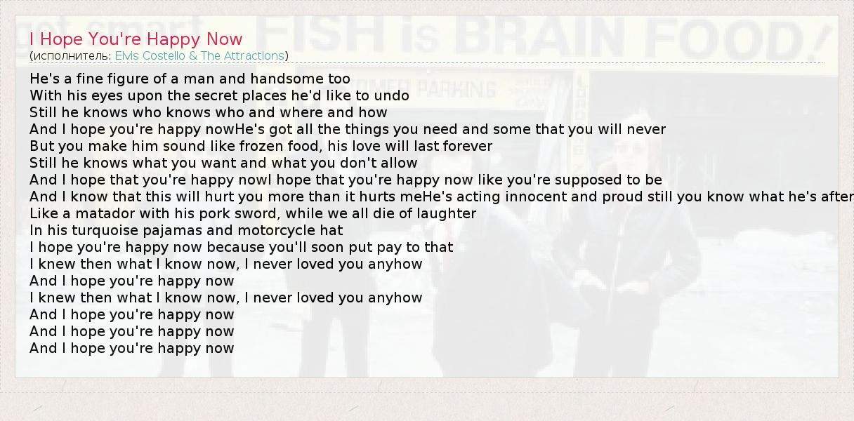 And I hope that you're happy nowI hope that you're happy now like you're supposed to be