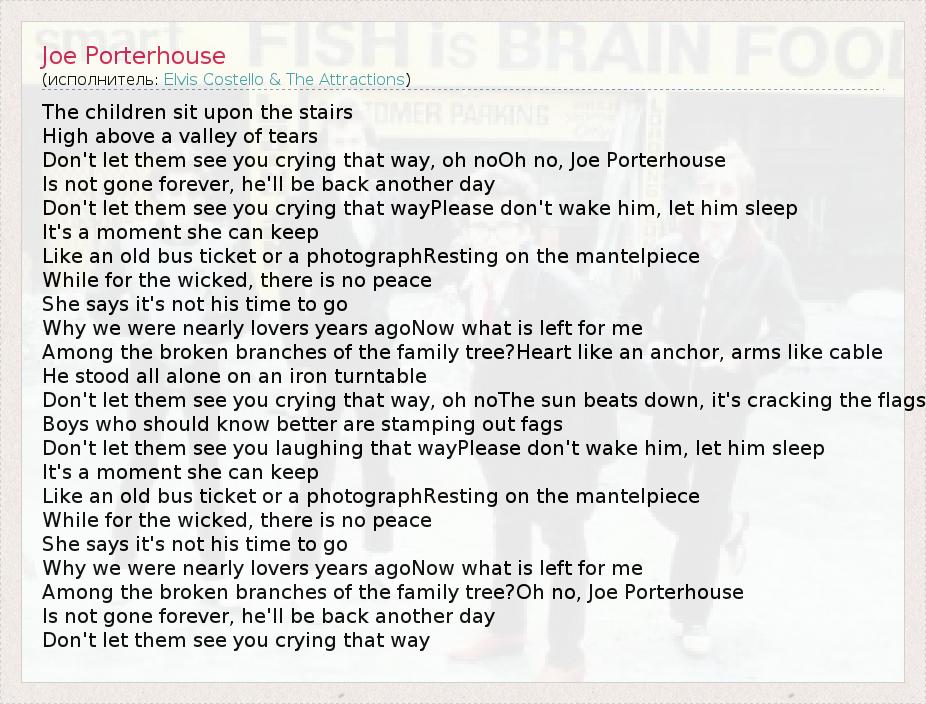 А как ты думаешь, о чем песня "Joe Porterhouse" ?
