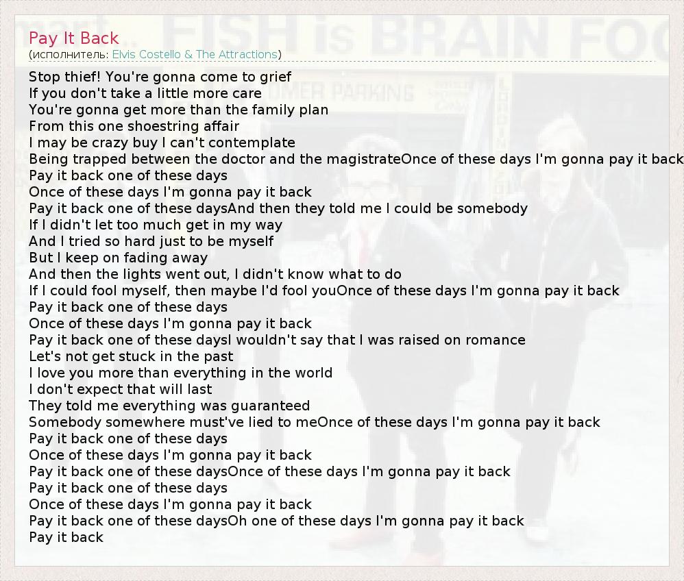 Pay it back one of these daysOh one of these days I'm gonna pay it back