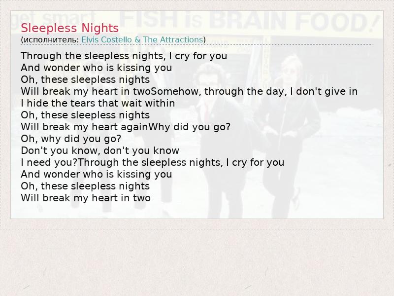 А как ты думаешь, о чем песня "Sleepless Nights" ?