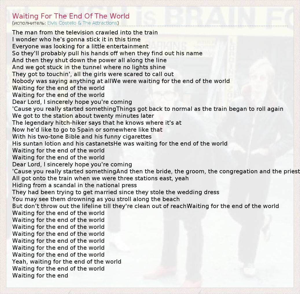 А как ты думаешь, о чем песня "Waiting For The End Of The World" ?