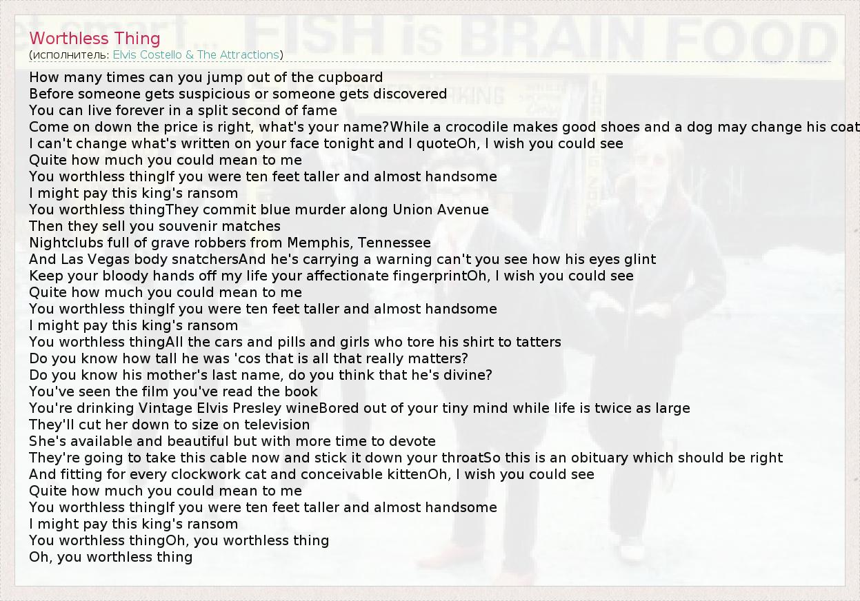 А как ты думаешь, о чем песня "Worthless Thing" ?