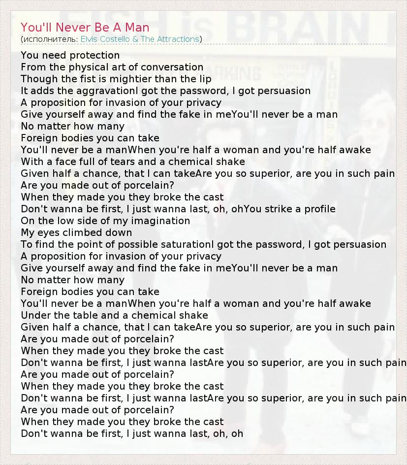 А как ты думаешь, о чем песня "You'll Never Be A Man" ?