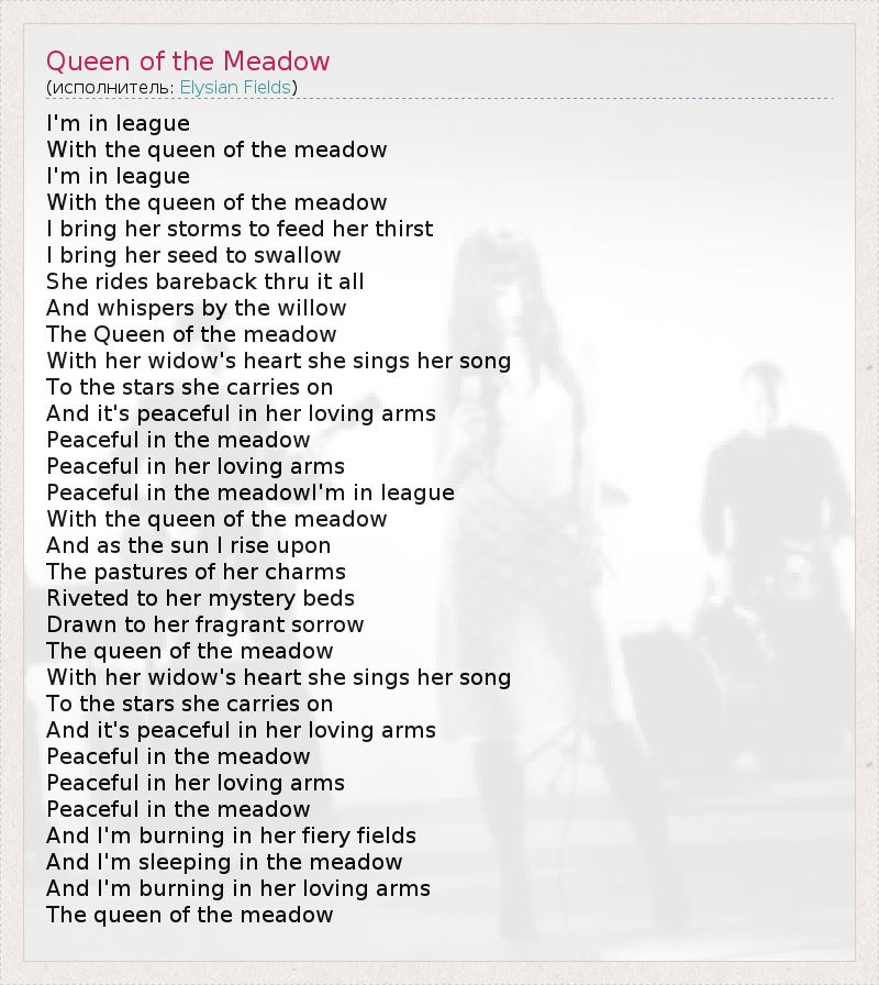 А как ты думаешь, о чем песня "Queen of the Meadow" ?