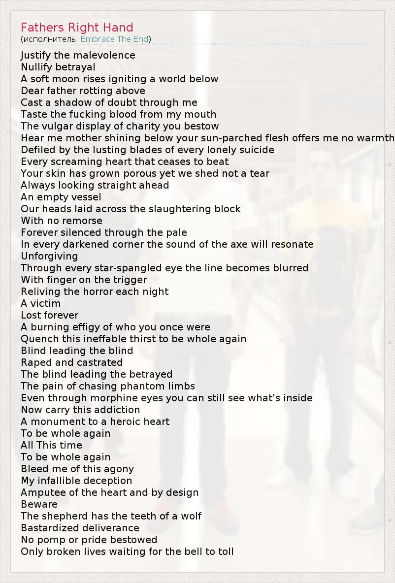 А как ты думаешь, о чем песня "Fathers Right Hand" ?