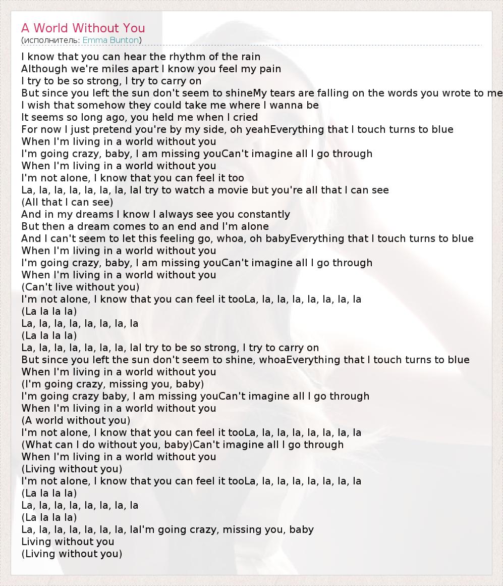 А как ты думаешь, о чем песня "A World Without You" ?