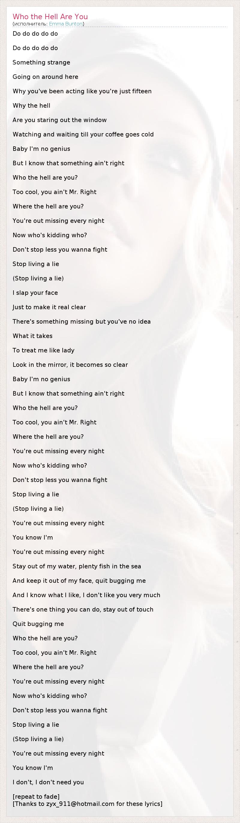 А как ты думаешь, о чем песня "Who the Hell Are You" ?