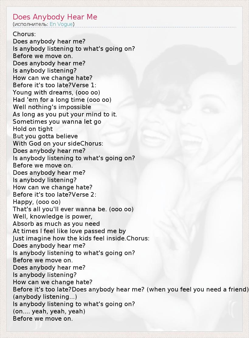 А как ты думаешь, о чем песня "Does Anybody Hear Me" ?
