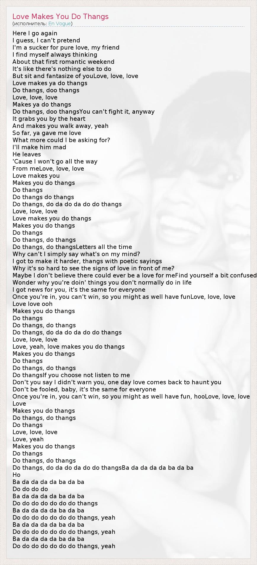 А как ты думаешь, о чем песня "Love Makes You Do Thangs" ?