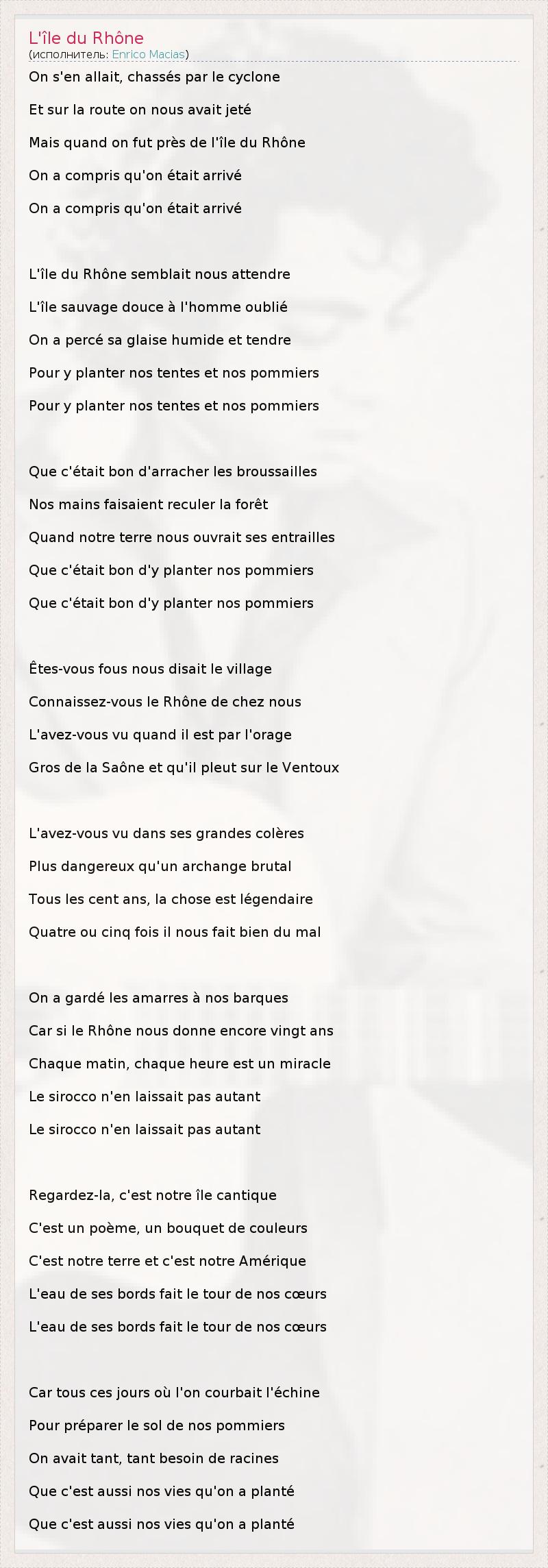 А как ты думаешь, о чем песня "L'île du Rhône" ?
