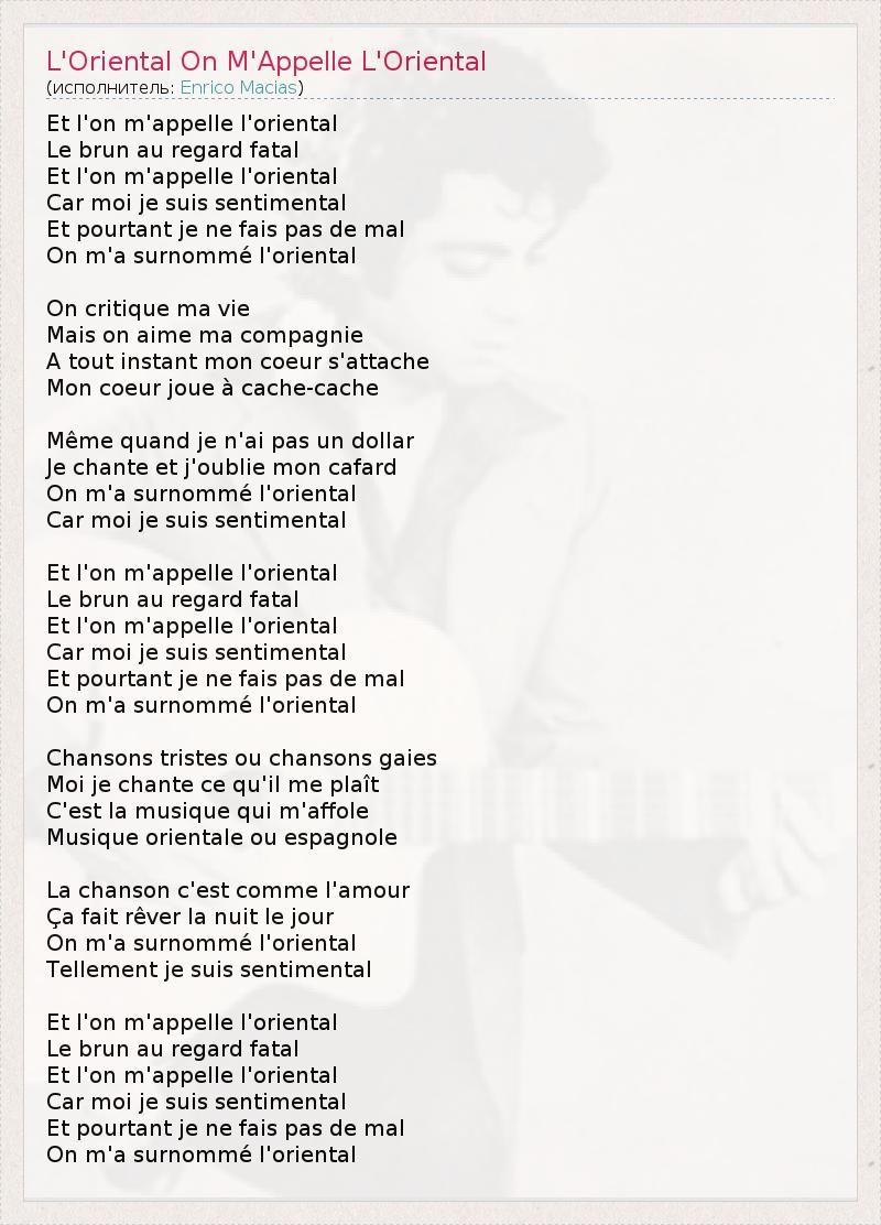 ГлавнаяИсполнителиEnrico MaciasL'Oriental On M'Appelle L'Oriental