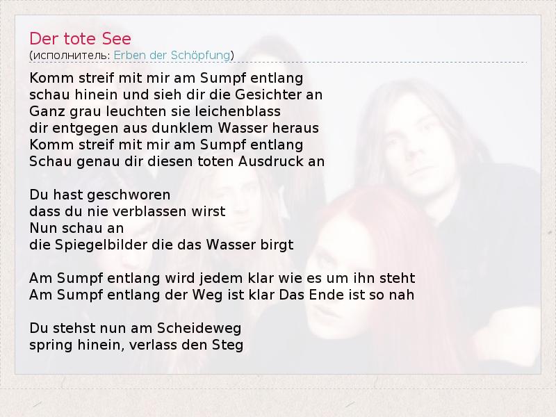 А как ты думаешь, о чем песня "Der tote See" ?