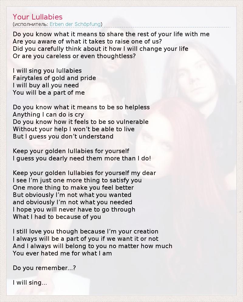 А как ты думаешь, о чем песня "Your Lullabies" ?