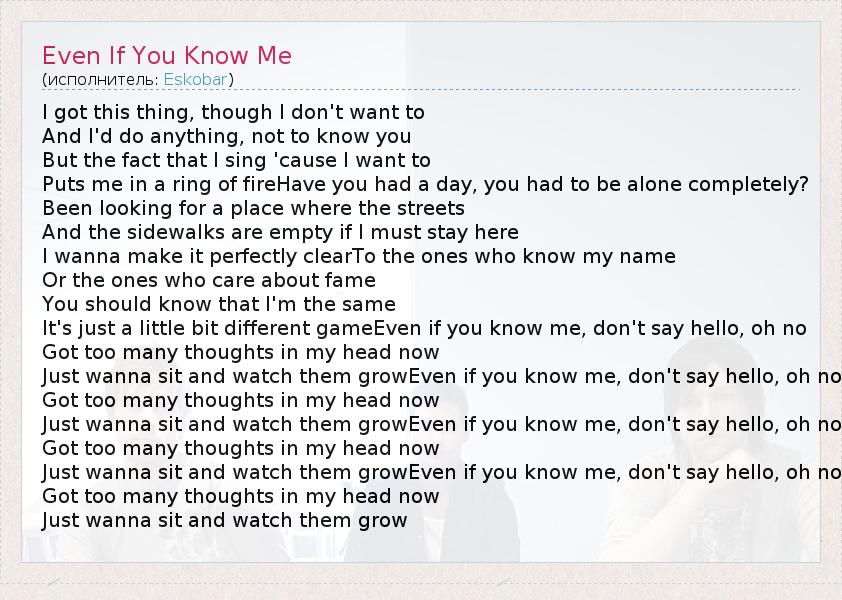 А как ты думаешь, о чем песня "Even If You Know Me" ?