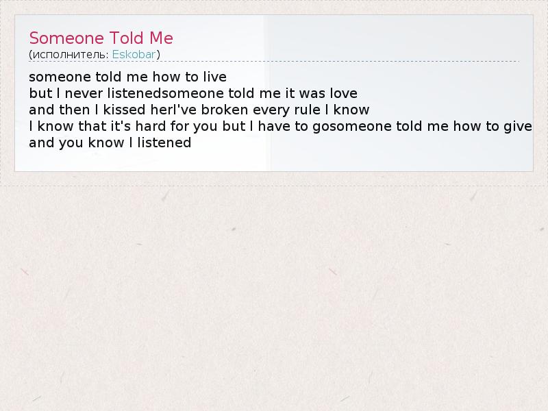 А как ты думаешь, о чем песня "Someone Told Me" ?