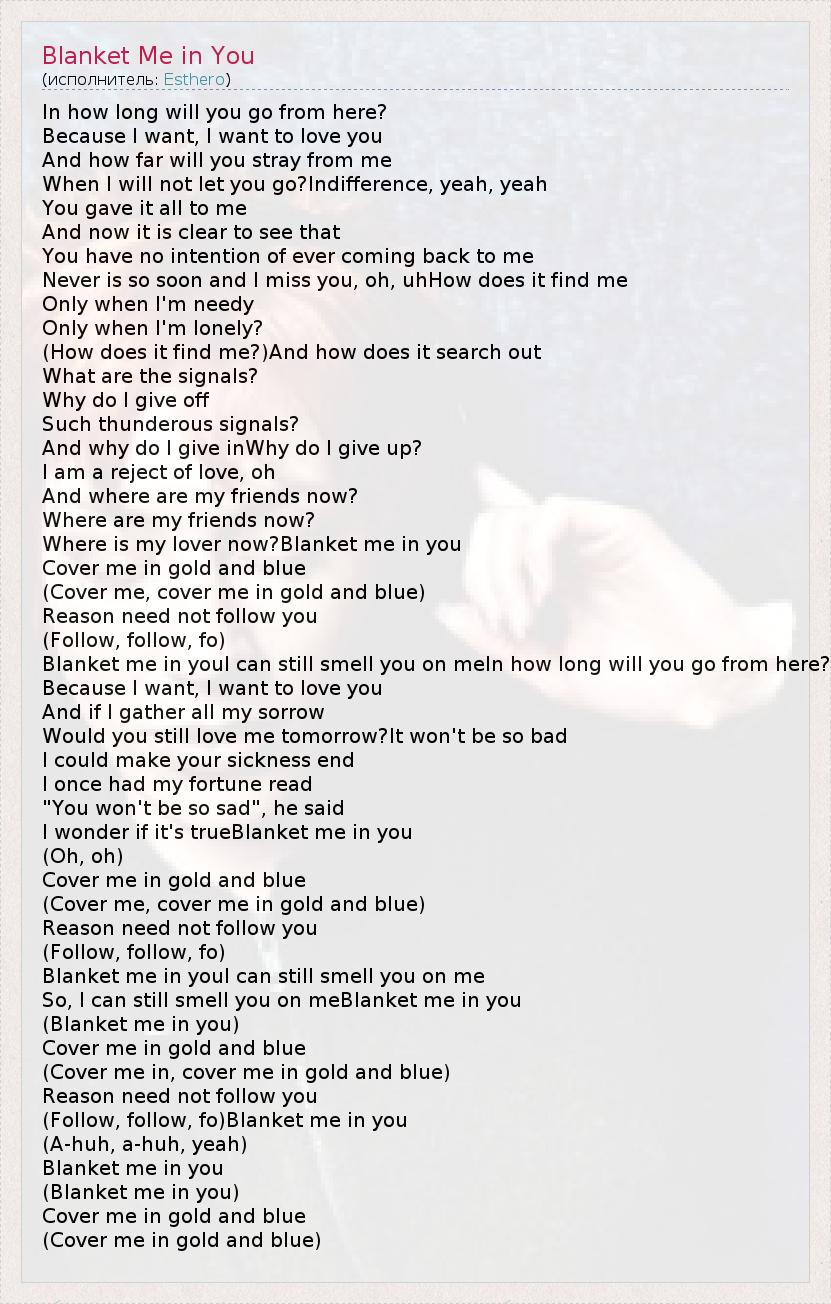 А как ты думаешь, о чем песня "Blanket Me in You" ?