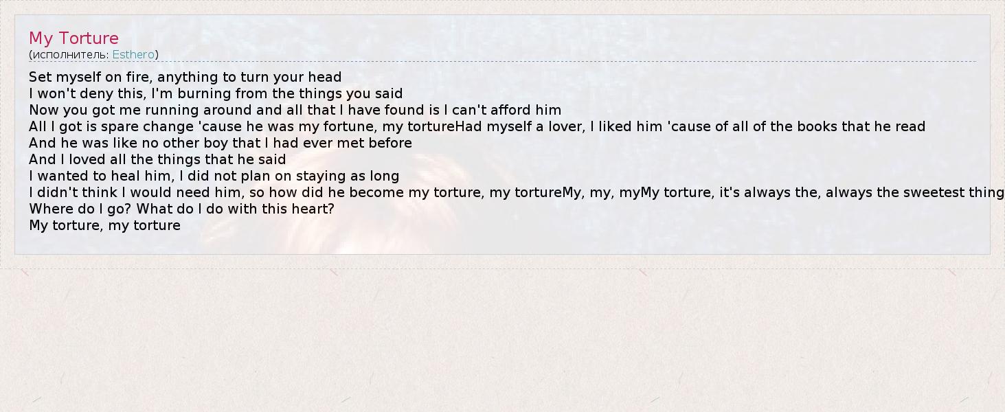 А как ты думаешь, о чем песня "My Torture" ?