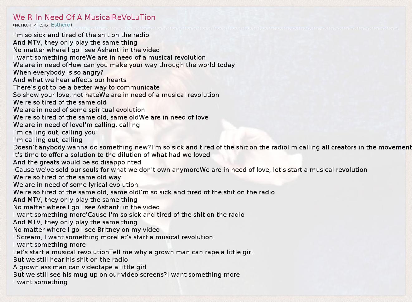 А как ты думаешь, о чем песня "We R In Need Of A MusicalReVoLuTion" ?