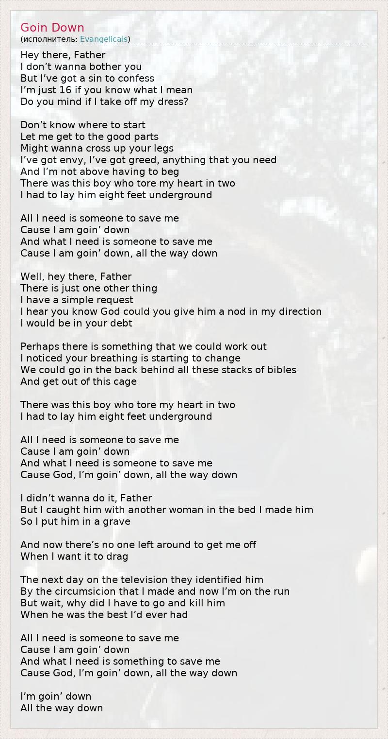 Потому что, Боже, я опускаюсь все ниже, все ниже и ниже