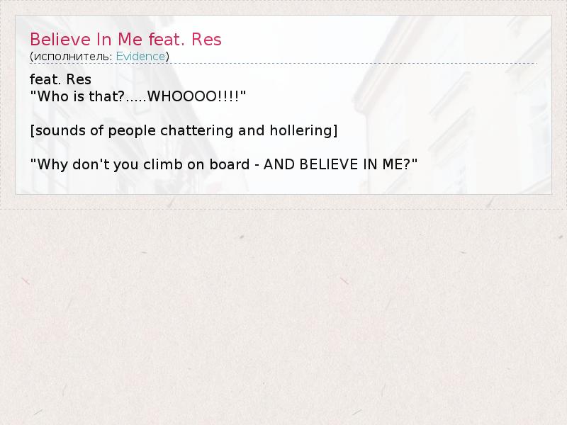 ГлавнаяИсполнителиEvidenceBelieve In Me feat. Res