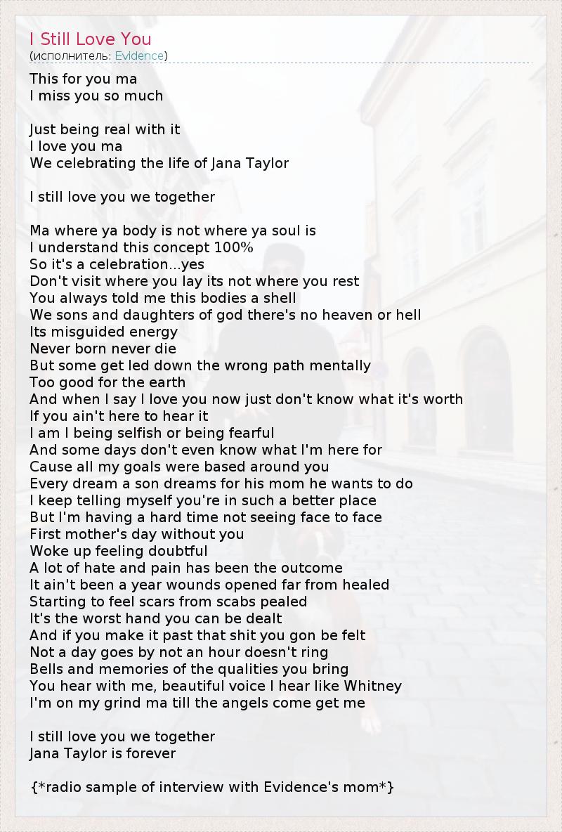 А как ты думаешь, о чем песня "I Still Love You" ?