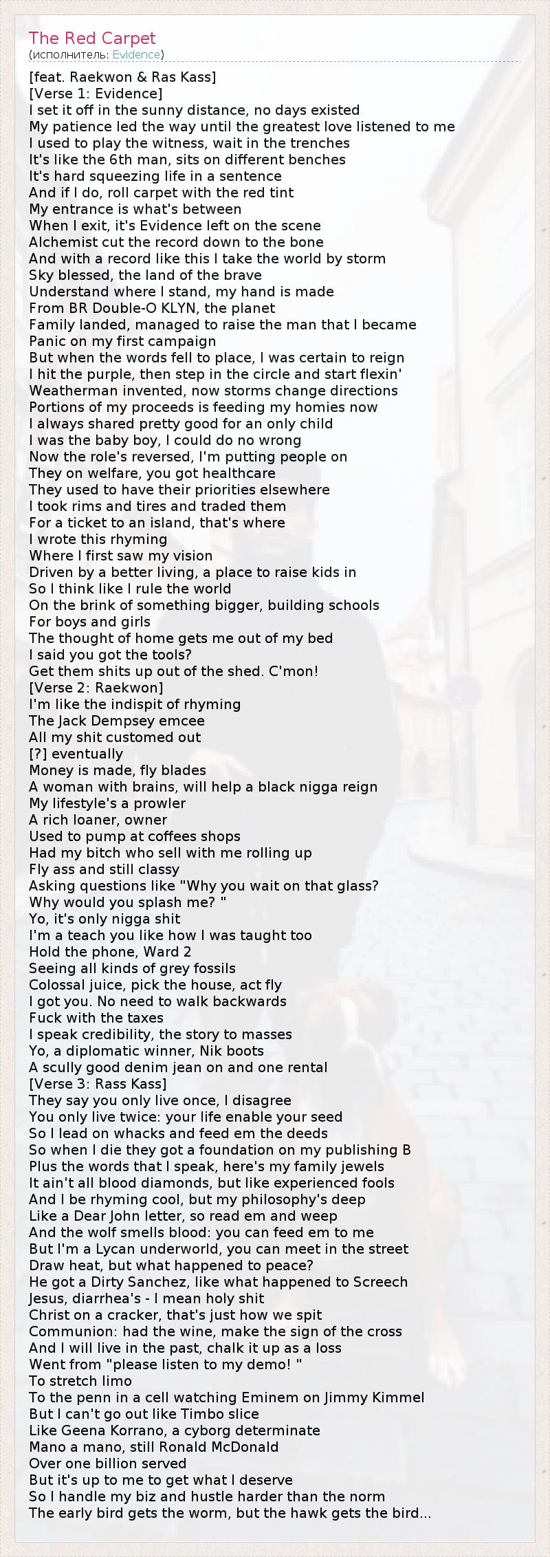 А как ты думаешь, о чем песня "The Red Carpet" ?