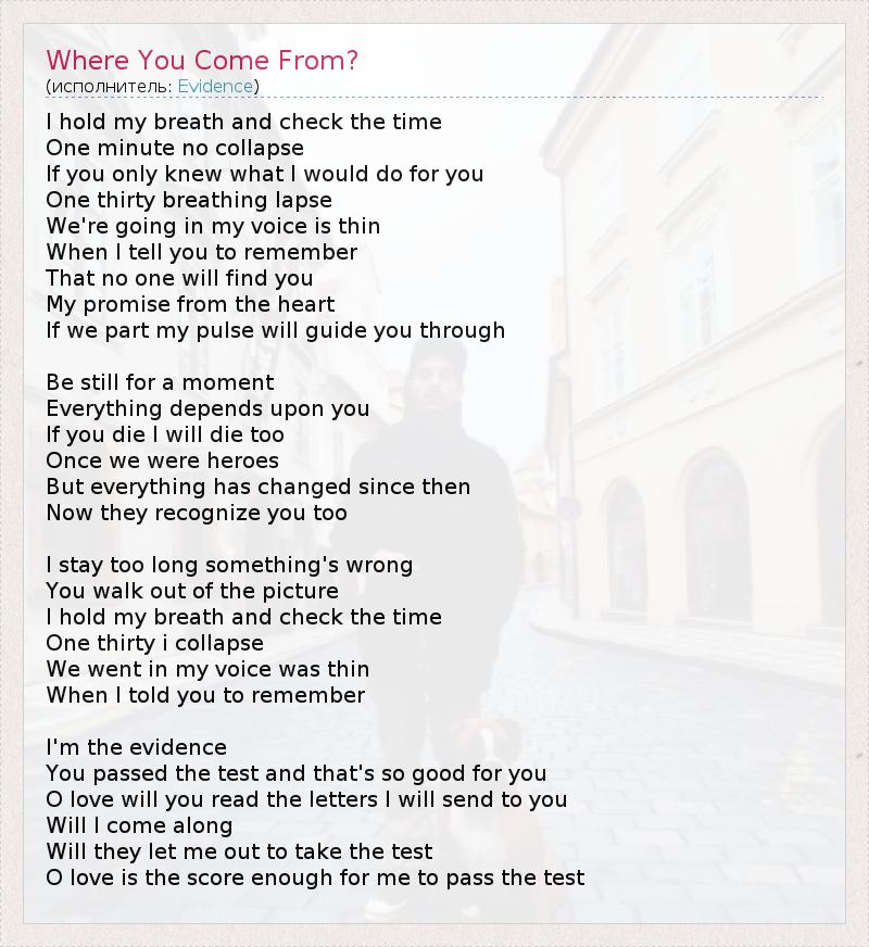 А как ты думаешь, о чем песня "Where You Come From?" ?