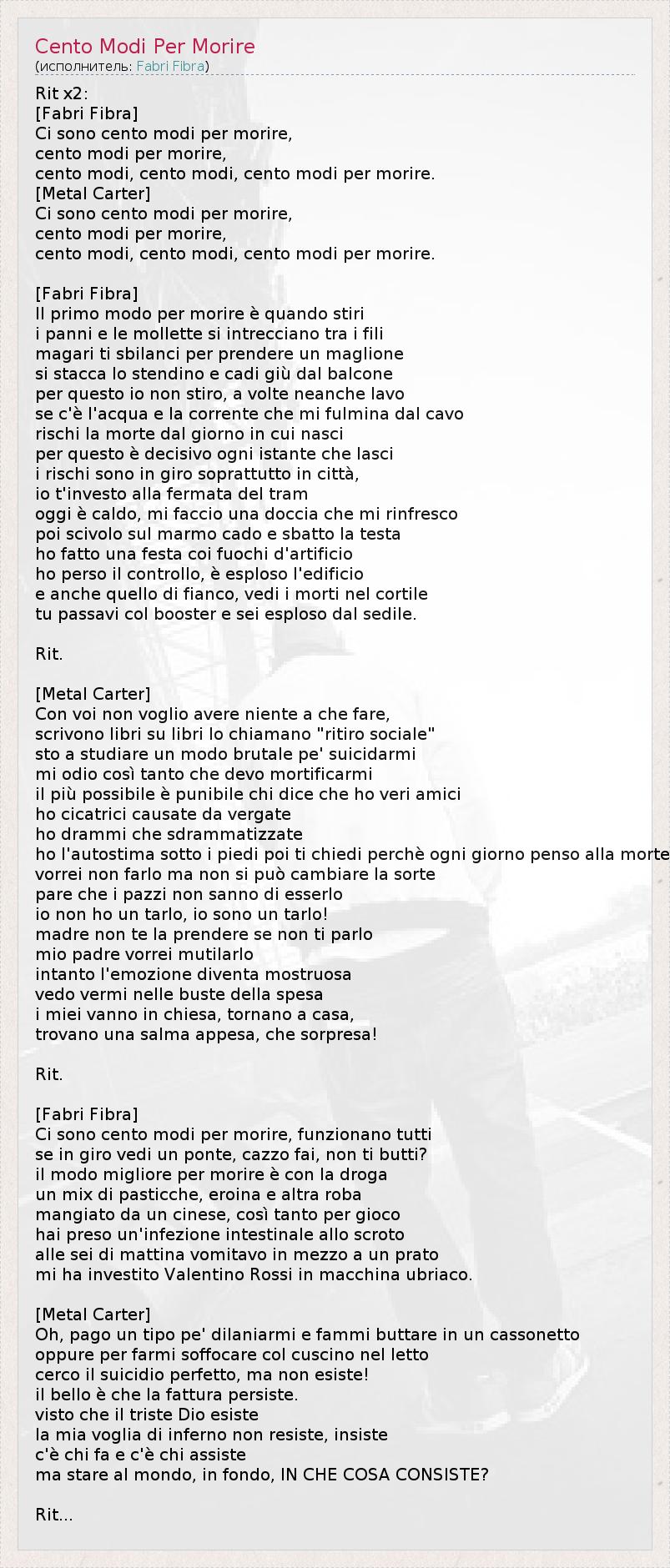 Cento Моди , Cento Моди , Cento Моди за Morire .