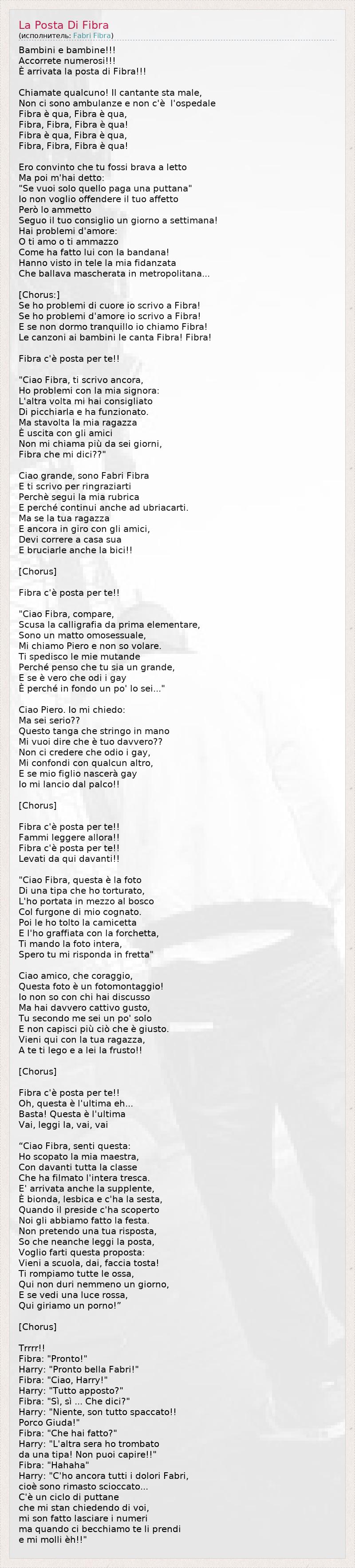 А как ты думаешь, о чем песня "La Posta Di Fibra" ?