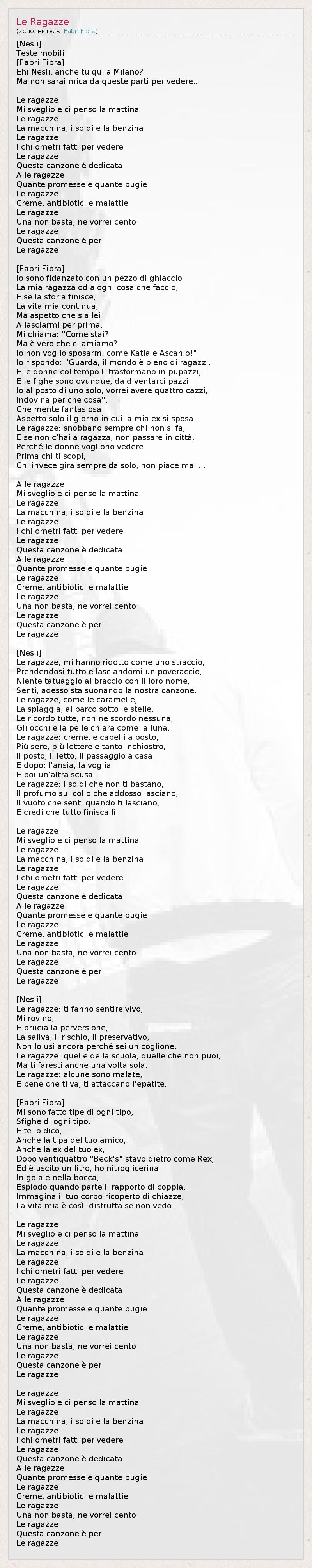 А как ты думаешь, о чем песня "Le Ragazze" ?