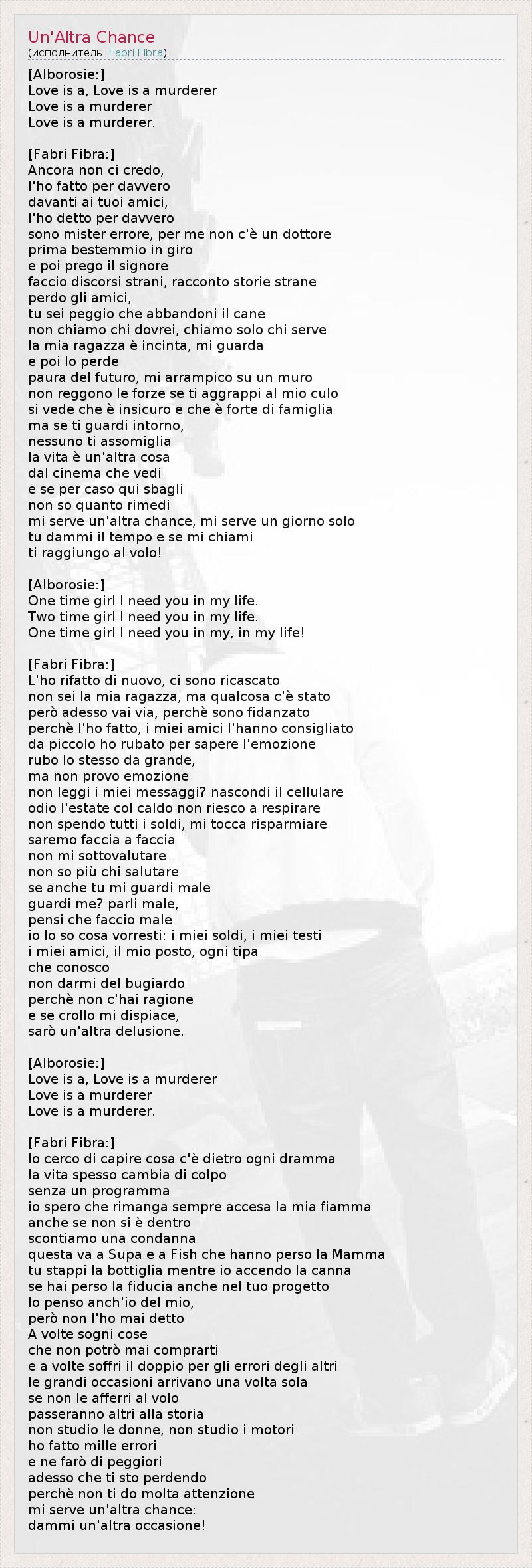 А как ты думаешь, о чем песня "Un'Altra Chance" ?