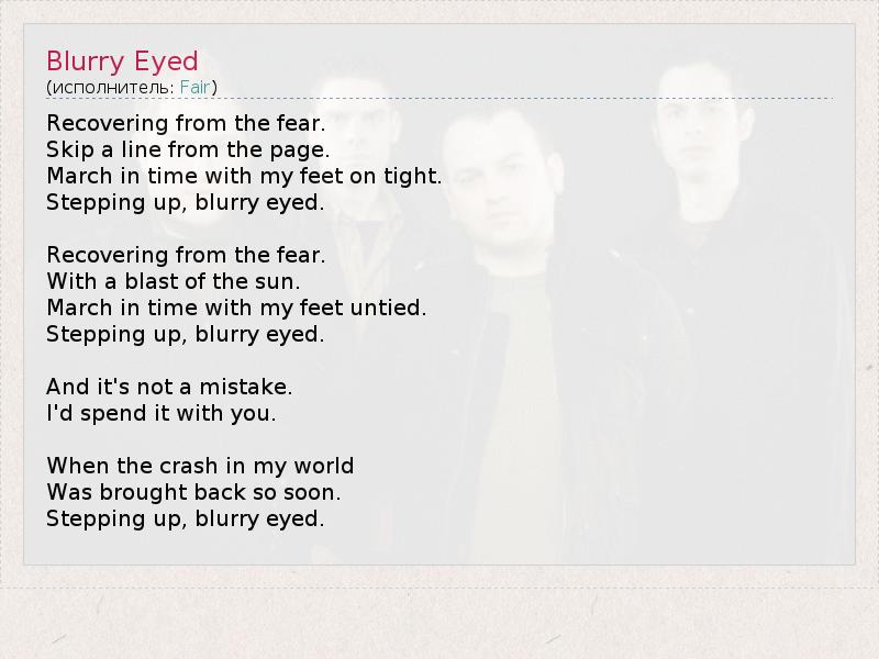 А как ты думаешь, о чем песня "Blurry Eyed" ?