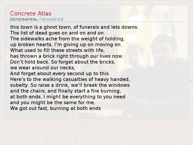 А как ты думаешь, о чем песня "Concrete Atlas" ?