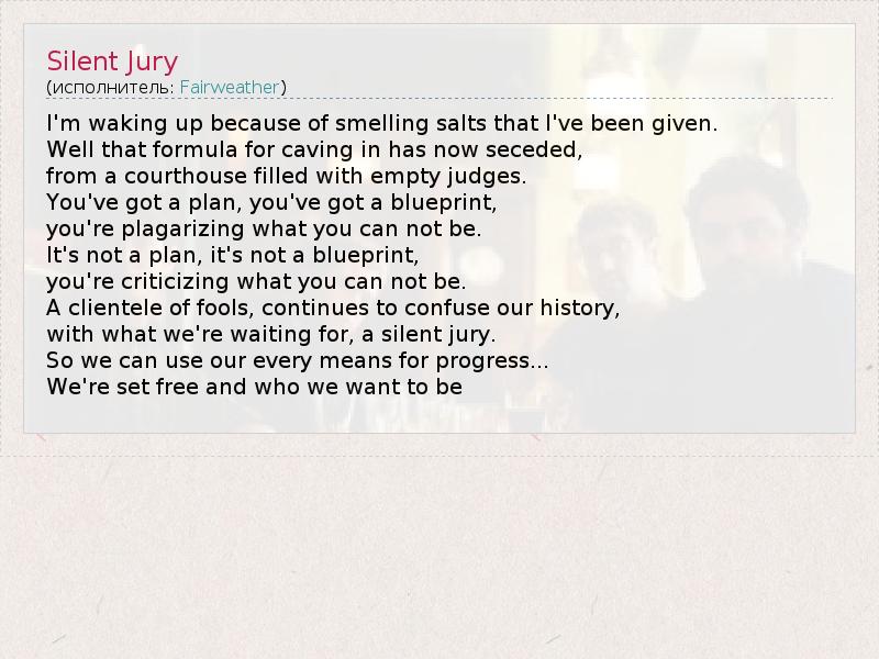 А как ты думаешь, о чем песня "Silent Jury" ?
