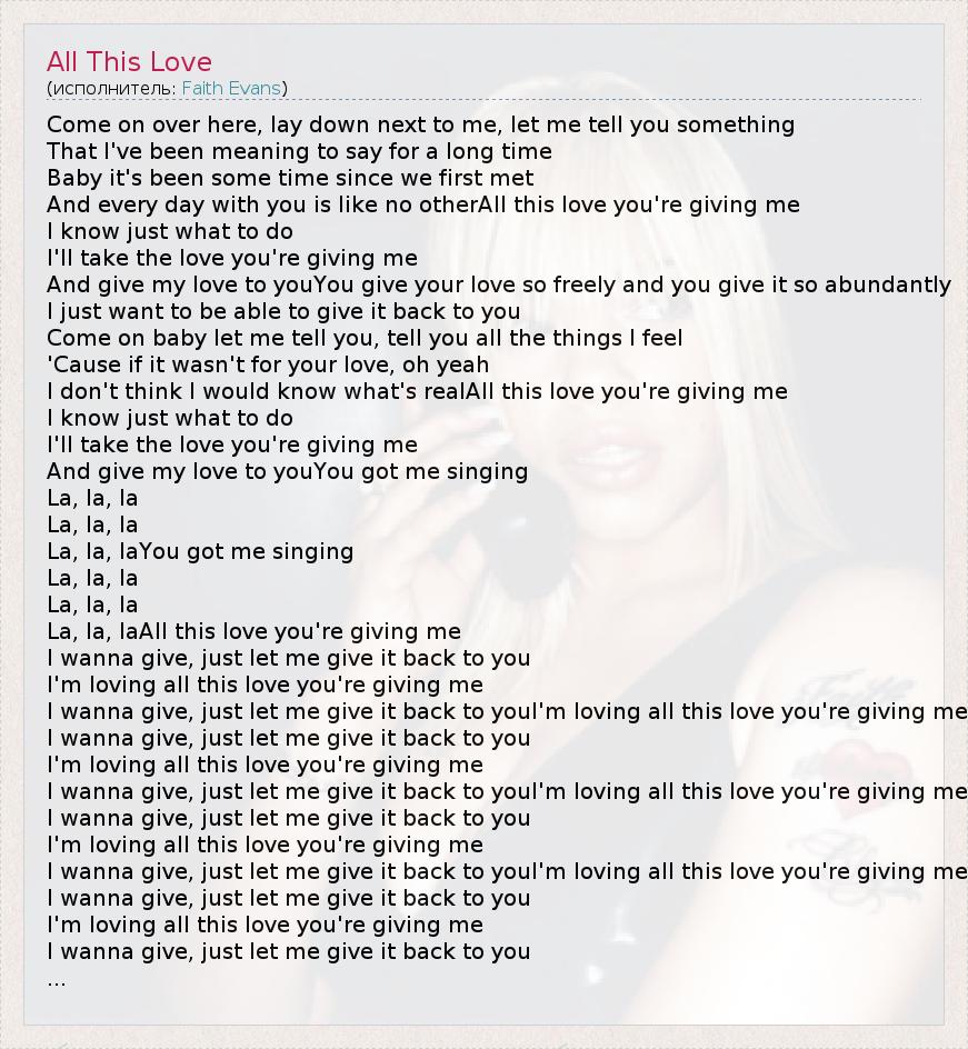 La, la, laAll this love you're giving me