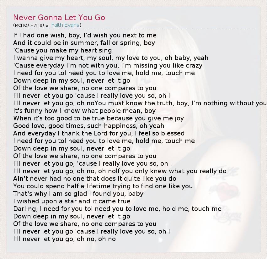 А как ты думаешь, о чем песня "Never Gonna Let You Go" ?