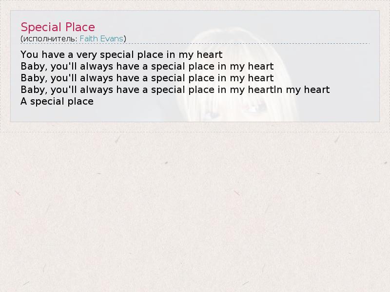 А как ты думаешь, о чем песня "Special Place" ?