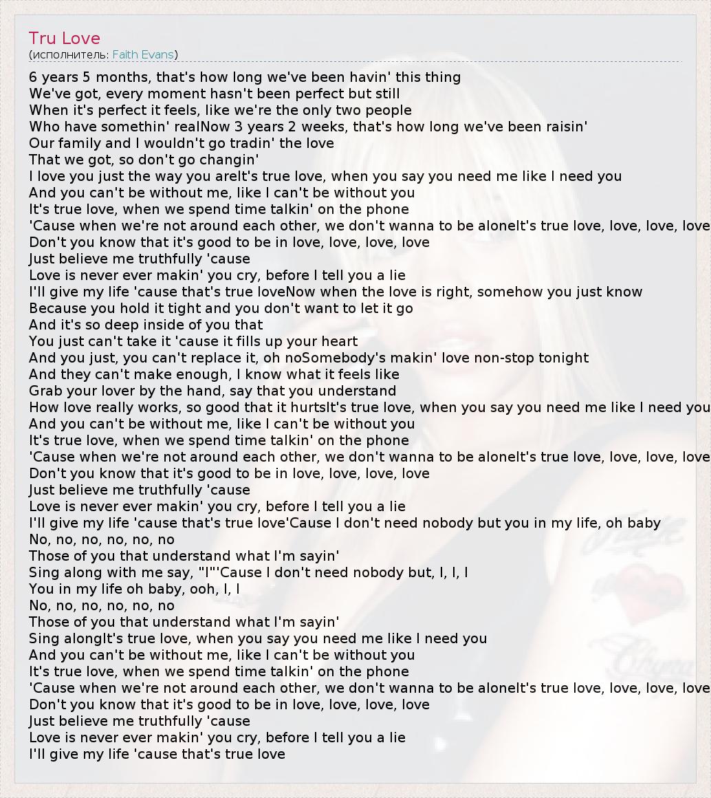 I'll give my life 'cause that's true love'Cause I don't need nobody but you in my life, oh baby