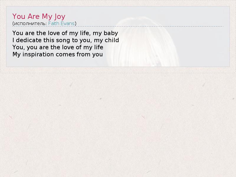 А как ты думаешь, о чем песня "You Are My Joy" ?