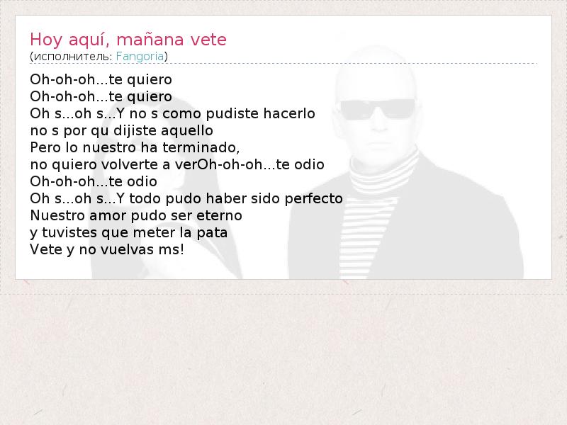 А как ты думаешь, о чем песня "Hoy aquí, mañana vete" ?