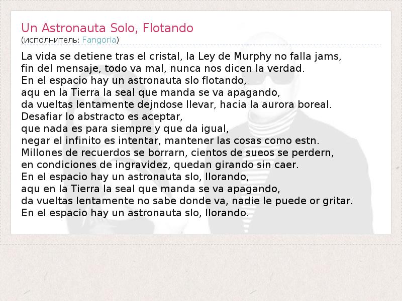 А как ты думаешь, о чем песня "Un Astronauta Solo, Flotando" ?