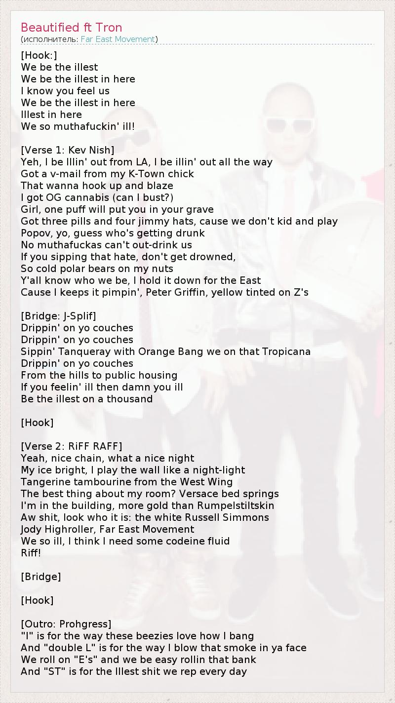А как ты думаешь, о чем песня "Beautified ft Tron" ?