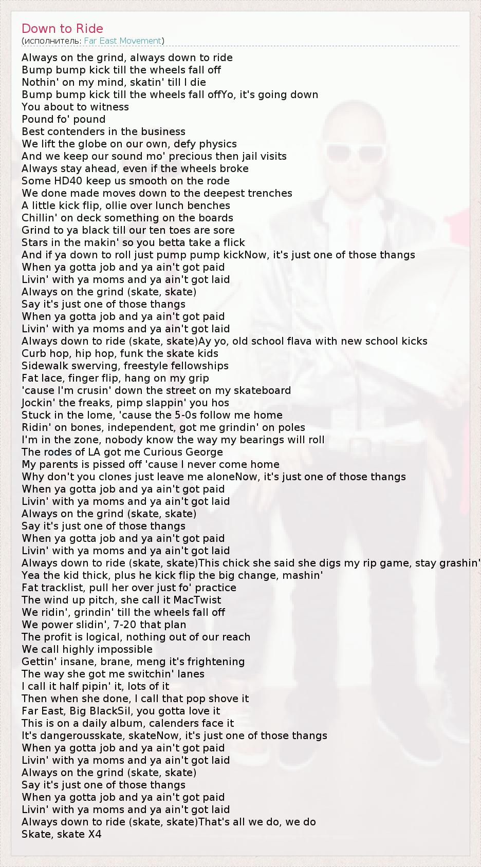 А как ты думаешь, о чем песня "Down to Ride" ?
