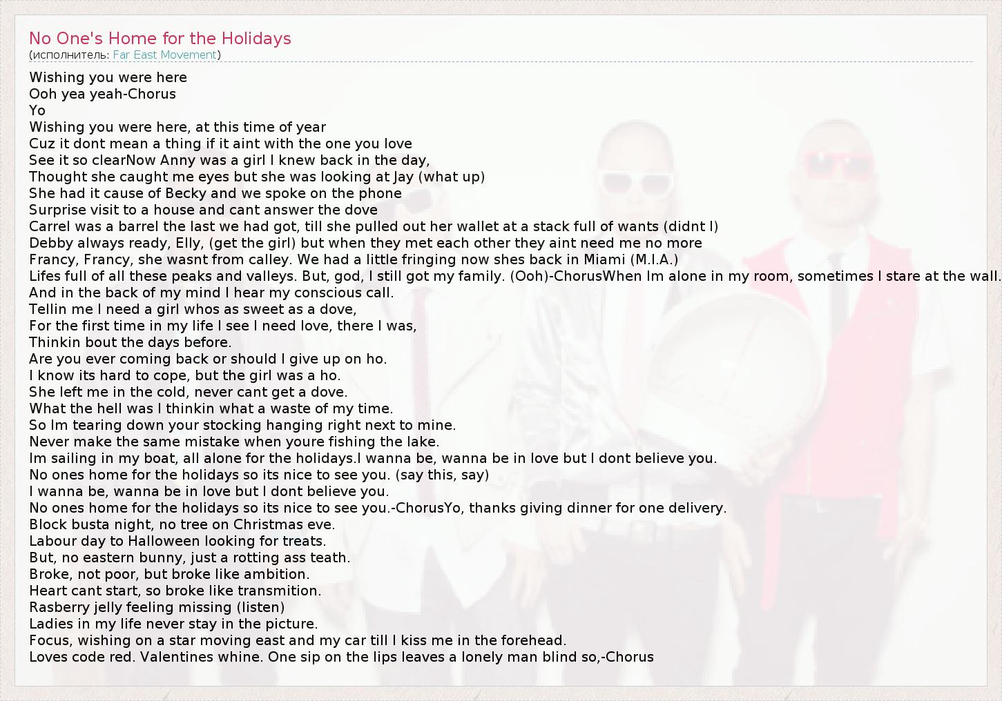 А как ты думаешь, о чем песня "No One's Home for the Holidays" ?