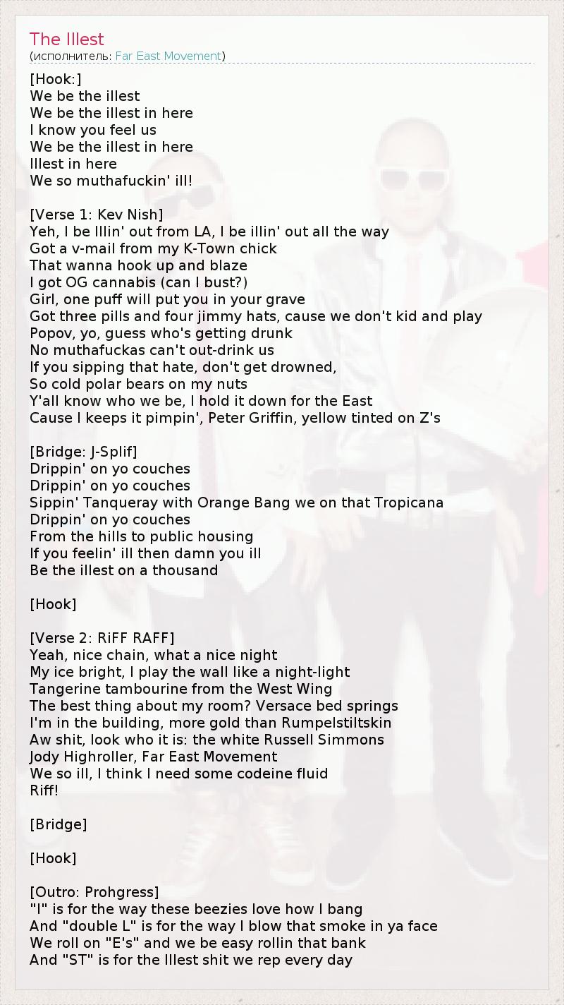 16 – Все вышеперечисленные английские буквы образуют слово ILLEST – название песни.