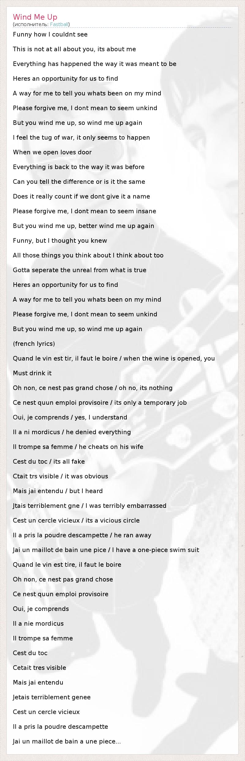 А как ты думаешь, о чем песня "Wind Me Up" ?