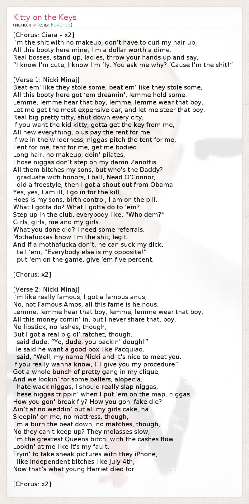 А как ты думаешь, о чем песня "Kitty on the Keys" ?