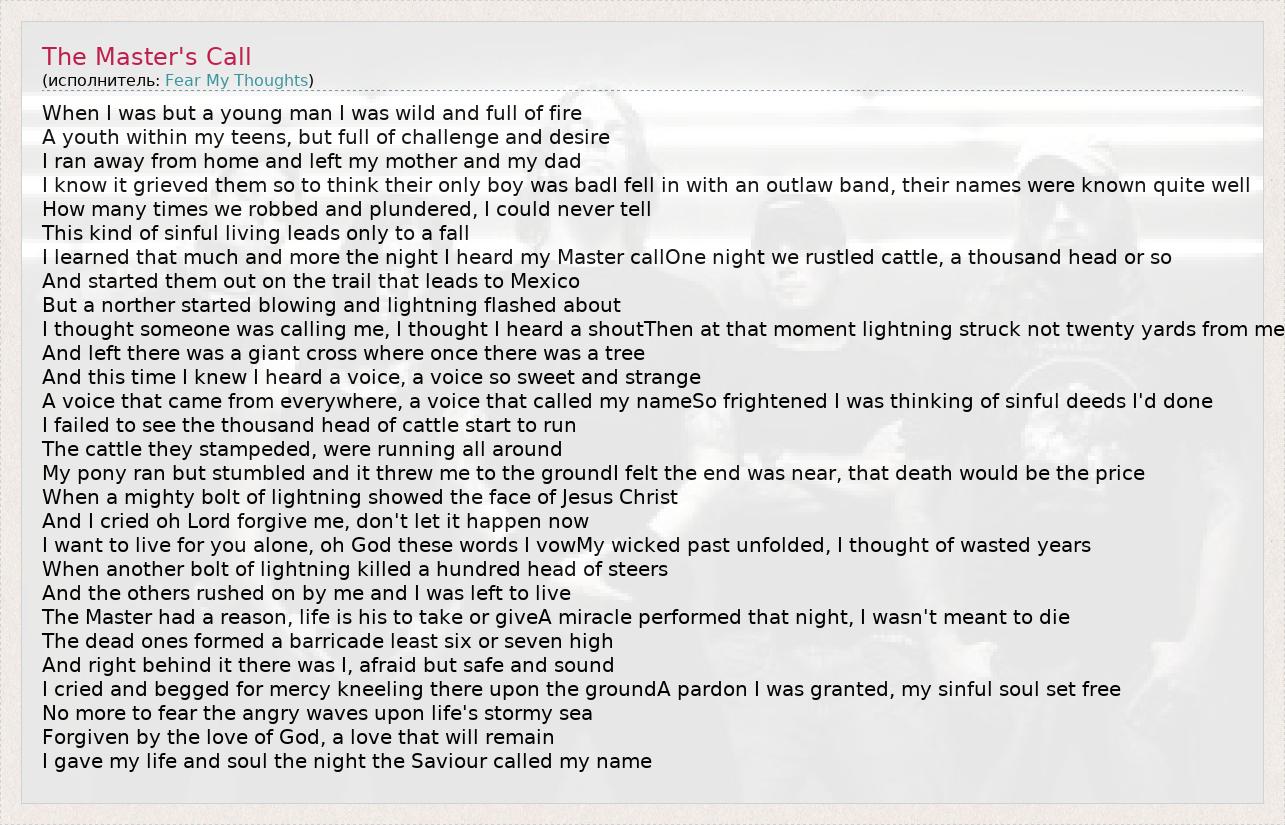 А как ты думаешь, о чем песня "The Master's Call" ?