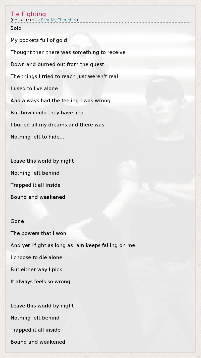 А как ты думаешь, о чем песня "Tie Fighting" ?