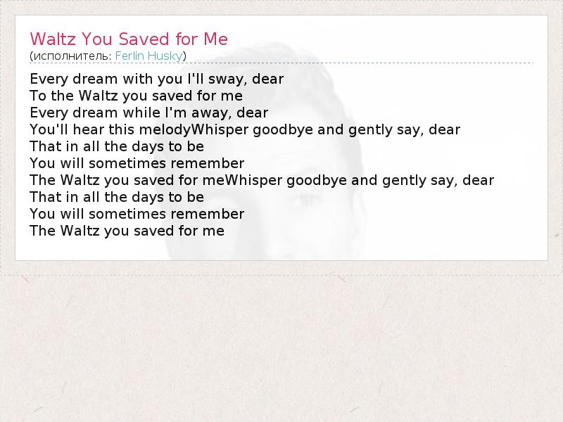 А как ты думаешь, о чем песня "Waltz You Saved for Me" ?